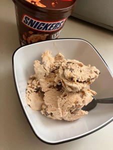 Essen : Bratwurstscheiben mit Nudeln und Ketchup (Resteessen) / Snickerseis