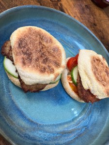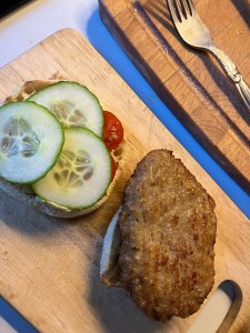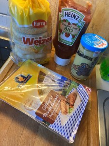Essen : Toasty Burger aus Geflügelfrikadelle / Croissant mit Salamisticks