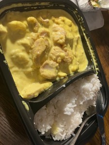 Essen : Butterchicken mit Reis (Lieferservice)