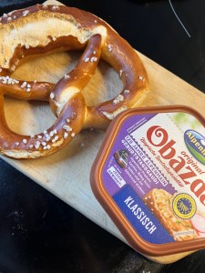 Essen : Brotzeit mit Brezn, Obazda und Cordon bleu
