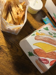 Essen : Burger & Pommes (Lieferservice) / Schokokränze