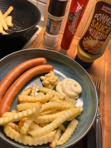 Essen : Putenkäsekrainer mit Pommes
